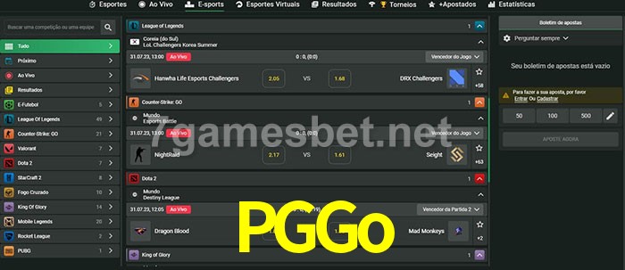 O PGGo oferece uma grande seleção de opções de apostas em e-sports com probabilidades competitivas